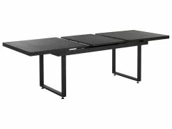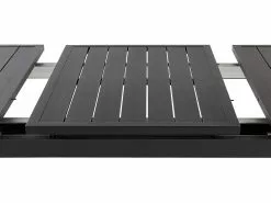 Nauti auringosta ja hyvästä ruuasta yhdessä ystävien ja perheen kesken tällä tilavalla ulkoruokailuryhmällä. Jatkettavasta pöydästä ja 6 tuolista koostuva setti on valmistettu korkealaatuisesta ja kestävästä mustaksi jauhemaalatusta alumiinista. Irrotettavan jatkopalan ansiosta pöydän jatkaminen käy helposti ja vaivattomasti. Istuinosien paksu polyesteriverhoilu ja muovisella puujäljitelmällä päällystetyt käsinojat takaavat istumamukavuuden ja oikeanlaisen tuen. Neutraalit värit antavat kalustesetille modernin mutta minimalistisen ilmeen, joka sopii useisiin erilaisiin ulkosisustuksiin.