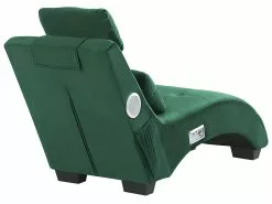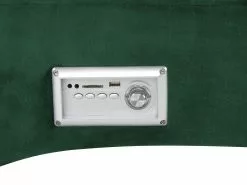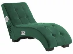 Tämä upea divaani on todellinen herkku kaikille, jotka haluavat rentoutua kuunnellen musiikkia, tai muita ääniä laitteestaan. Sen kaareva muoto ja 2 irrotettavaa tyynyä, yksi alaselälle ja toinen tarranauhalla varustettu päänojan tyyny, takaavat että voit rentoutua juuri kuten haluat. Sisäänrakennetun Bluetooth-kaiuttimen avulla voit muodostaa yhteyden ja toistaa kaikki suosikkikappaleesi. Laitetta voi myös ladata ilman, että sinun tarvitsee nousta ylös, sillä divaanissa on kätevä USB-portti. Upea samettiverhoilu ja tuftatut yksityiskohdat antavat divaanille modernin ja ylellisen ilmeen.
