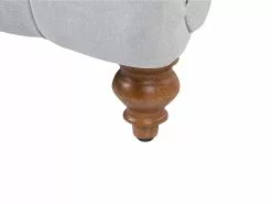 Elegantti, ja vanhan ajan henkeä uhkuva divaani on välitön huoneen keskipiste. Kaareva siluetti korostuu pyöristyvän selkänojan ansiosta, joka kiinnittää huomion. Kaunis nappituftausverhoilu ja koristeelliset jalat ovat yhdessä reilun pehmustuksen kanssa täydellinen valinta lepotuoliksi. Divaanin mukana tulee myös lieriönmuotoinen koristetyyny.