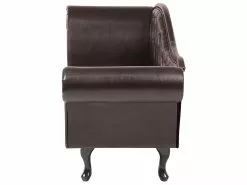 Klassinen keinonahkainen divaani on täydellinen tapa viimeistellä moderni tai perinteinen luksushenkinen sisustus. Suunniteltu pyöristyvien käsinojien ja kaarevan selkänojan kanssa, se tarjoaa täydellistä mukavuutta ja ajatonta tyyliä. Kaunis nappituftaus ja muodokkaat jalat viimeistelevät elegantin ulkonäön.