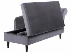 Yksinkertainen, mutta upea samettinen divaani, joka kätkee sisäänsä säilytystilaa. Klassinen tyyli kiinnittää huomion välittömästi, ja elegantti muoto puisilla jaloilla on takuuvarma valinta. Divaani on pehmustettu runsaasti mukavuutta ajatellen, ja se on täydellinen päiväunia varten, tai vain rentoutumiseen. Kätevä säilytystila divaanin sisässä on mainio paikka säilöä esimerkiksi ylimääräiset tyynyt tai huovat, jotka voi tarpeen tulleen ottaa nopeasti esiin.