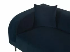 Täydennä olohuoneesi sisustusta tällä erittäin tyylikkäällä divaanilla. Sen yksinkertainen ja sileä muoto yhdessä kaarevan käsi- ja selkänojan kanssa muistuttavat vuosisadan puolivälin modernia tyyliä. Suorat mustat rautajalat korostavat divaanin laivastonsinistä väriä kauniisti. Divaani sopii loistavasti mihin tahansa moderniin olohuoneeseen tai suureen makuuhuoneeseen. Istu ja rentoudu tässä pehmeässä samettiverhoillussa lepotuolissa.