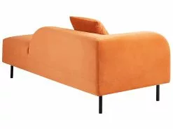 Täydennä olohuoneesi sisustusta tällä erittäin tyylikkäällä divaanilla. Sen yksinkertainen ja sileä muoto yhdessä kaarevan käsi- ja selkänojan kanssa muistuttavat vuosisadan puolivälin modernia tyyliä. Suorat mustat rautajalat korostavat divaanin oranssia väriä kauniisti. Divaani sopii loistavasti mihin tahansa moderniin olohuoneeseen tai suureen makuuhuoneeseen. Istu ja rentoudu tässä pehmeässä samettiverhoillussa lepotuolissa.