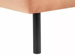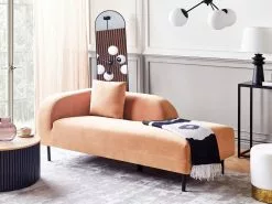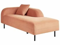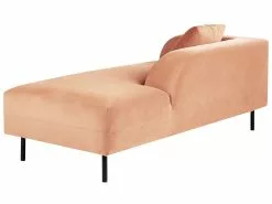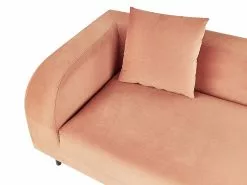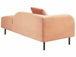 Täydennä olohuoneesi sisustusta tällä erittäin tyylikkäällä divaanilla. Sen yksinkertainen ja sileä muoto yhdessä kaarevan käsi- ja selkänojan kanssa muistuttavat vuosisadan puolivälin modernia tyyliä. Suorat mustat rautajalat korostavat divaanin persikanpunaista väriä kauniisti. Divaani sopii loistavasti mihin tahansa moderniin olohuoneeseen tai suureen makuuhuoneeseen. Istu ja rentoudu tässä pehmeässä samettiverhoillussa lepotuolissa.