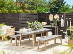 Lisää puutarhapöytäsi ympärille istuinpaikka tällä tyylikkäällä jakkaralla. Se on valmistettu sääolosuhteita ja kosteutta kestävistä materiaaleista, jotka ovat helppohoitoisia. Jakkaran istuin on valmistettu kauniin valkoisen värisestä kuitusementistä, jota korostavat vaaleasta akasiapuusta valmistetut jalat. Minimalistisen muotoilunsa ja upean väriyhdistelmänsä ansiosta jakkara sopii moniin erilaisiin ulkotiloihin, moderneista industriaalisiin ja retrotyylisistä boho-tyylisiin.