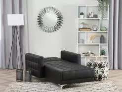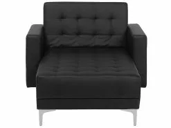 Modernin muotoilun divaani täydentämään kodin sisustusta. Sen verhoiluun on käytetty korkealaatuista keinonahkaa, joka on viimeistelty elegantilla ompeleella. Divaanin selkänoja voidaan taittaa enemmän rentoon asentoon, tai aivan alas. Metalliset jalat pitävät divaanin vakaana, ja reilusti täytetyt tyynyt antavat mukavuutta oleiluun.