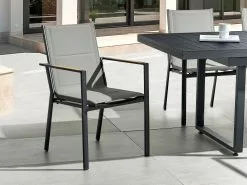 Tämä puutarhatuolisetti on täydellinen ulkoilmasta nauttimiseen ja ajan viettoon yhdessä ystävien tai perheen kanssa. Jokaisen tuolin istuin ja selkänoja on verhoiltu paksulla synteettisellä materiaalilla käyttömukavuuden takaamiseksi. Tuolien runko on valmistettu laadukkaasta jauhemaalatusta alumiinista, jonka ansiosta ne ovat kestäviä ja pitkäikäisiä. Käsinojissa olevat vaneripäälliset tarjoavat mukavan tuen. Yhdistä pöydät puutarhapöydän kanssa luodaksesi tyylikkään kokonaisuuden.