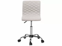 Tämä työtuoli on täydellinen lisä mihin tahansa moderniin sisustukseen. Ylivertaista mukavuutta tarjoava muhkea pehmuste auttaa tästä tuolista muodostumaan kotitoimistosi peruskaluste. Pitkäikäinen, korkealaatuinen verhoilu on valmistettu kulutuksen kestävästä polyesterista, jonka tikattu kuvio on esteettisesti miellyttävä. Korkeutta voidaan säästää helposti pneumaattisen korkeudensäädön ansiosta. Tuoli on tarpeeksi tukeva kannattelemaan painoa vuosia ja sen metallirunko takaa fyysisen ja visuaalisen turvallisuuden.