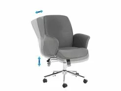 Tee työskentelystä mukavampaa tällä elegantilla työtuolilla. Korkealaatuisella harmaalla polyesterillä verhoillun tuolin istuin pehmustettu vaahtomuovilla maksimaalisen istuinmukavuuden saavuttamiseksi. Tuoli kääntyy 360° ja korkeudensäätömekanismin avulla säädät istuinkorkeutta helposti tarpeidesi mukaan. Kaarevat, pehmeät käsinojat tarjoavat täydellisen tuen.