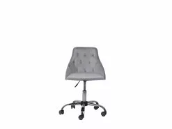 Päivitä työtilaasi tällä tyylikkäällä työtuolilla. Valmistettu vain korkealaatuisista materiaaleista, siinä on erittäin pehmeä samettiverhoilu ja vaahtomuovitäyte, joka tarjoaa huipputason mukavuuden. Kaltevat käsinojat ja keskikorkea selkänoja antavat tuolille tyylikkään ilmeen. Kromatut metallijalat sekä käytännöllinen korkeudensäädin kaasunostimella tarjoavat vakauden ja täydellisen istuinkorkeuden. Tämä työtuoli on ihanteellinen vaihtoehto, joka luo hienostuneen ja kodikkaan ilmeen mihin tahansa toimistotilaan.